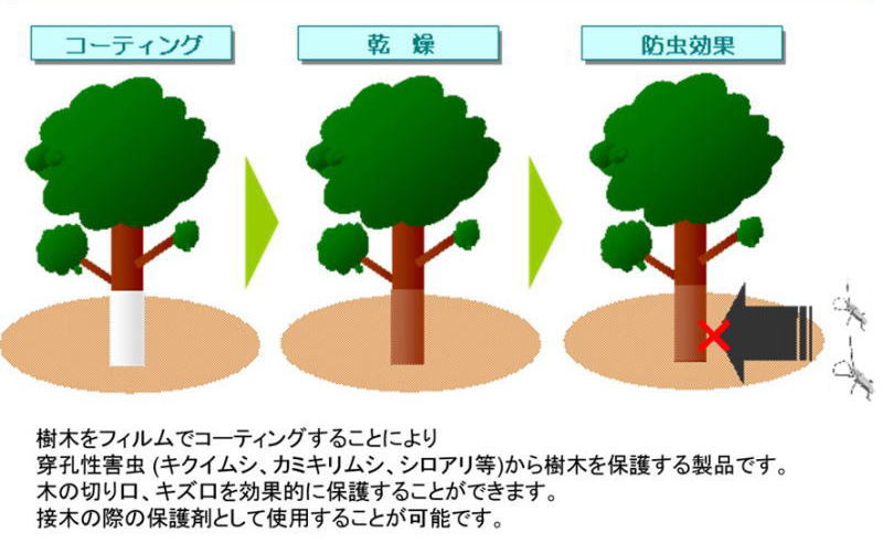近年、樹木をフィルムでコーティングすることにより穿孔性害虫から樹木を保護する新手法が開発されました。