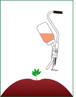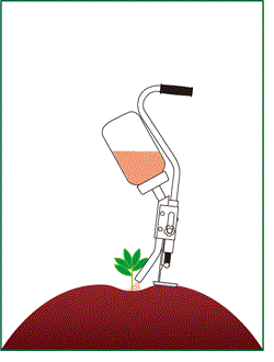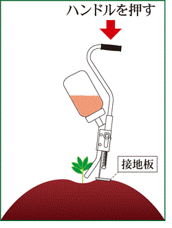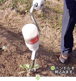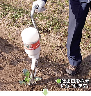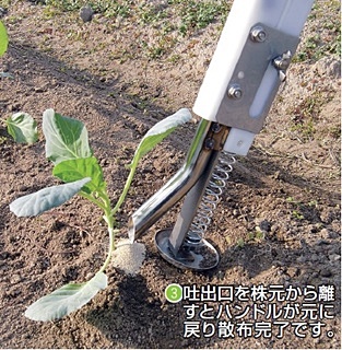 立ったまま、素早く株元への粒剤散布ができ、腰の負担がありません。