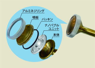 - マイクロナノバブルを発生させるユニットは、バブルが最も発生する噴頭部分に搭載。この結果、多くのナノバブルを発生させることに成功しました。